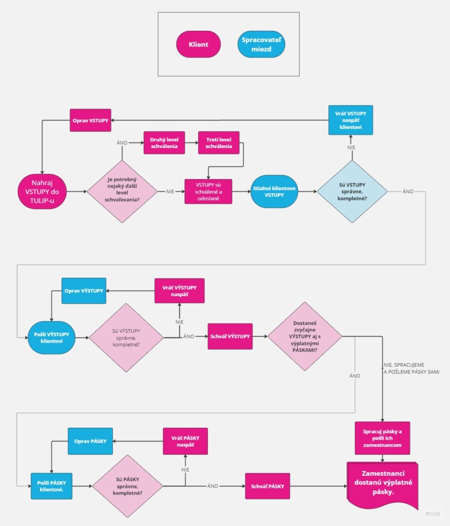 Upozorňujeme, že hlavnými rolami pre zamestnancov mzdového účtovníctva sú pre osobu, ktorá spracováva, sťahuje, nahráva dokumenty do TULIP-u, a pre osobu, ktorá to schvaľuje. Môže sa jednať o viacerých zamestnancov alebo iba jedného zamestnanca. Ak schvalovateľ odmietne niektoré dokumenty, vrátia sa k nahrávajúcemu na opravu.