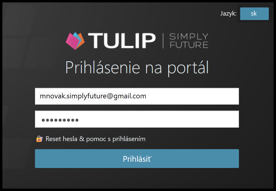 Správny odkaz na prihlasovanie sa nachádza v e-mailových oznámeniach, ktoré dostávate z TULIP-u.