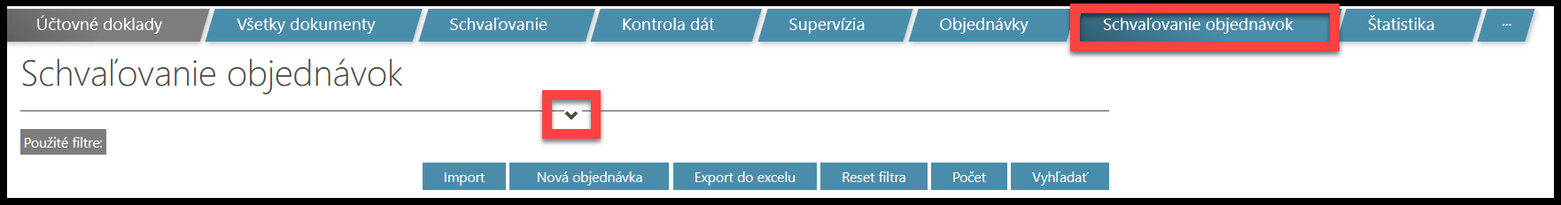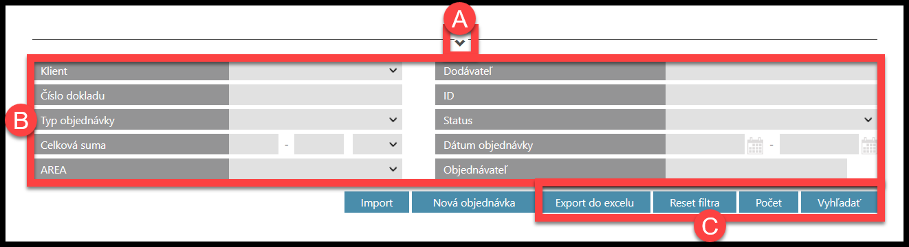 Na vyhľadanie požadovanej objednávky môžete použiť filtre. Kliknite na ikonu „v“.
