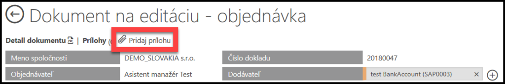 B) Pridanie príloh: Vložte dokument, ktorý si želáte pripojiť k objednávke.