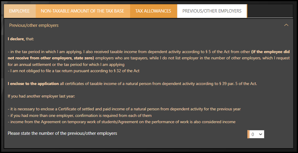 It helps you to decide if you can request the annual settlement by the employer or if you must do it by yourself.