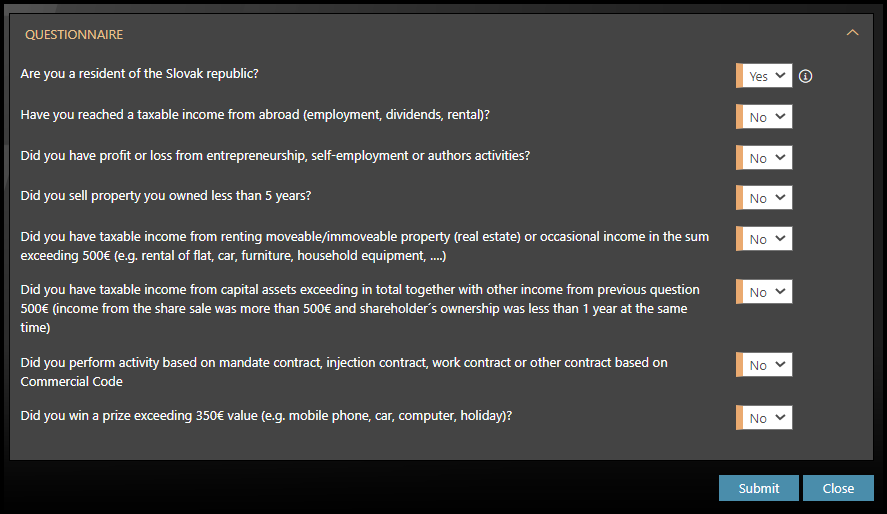 Please note that not just questions but also some attachments may be a mandatory part of the tax form, and it is not possible to submit your documents to Tax Office without them.