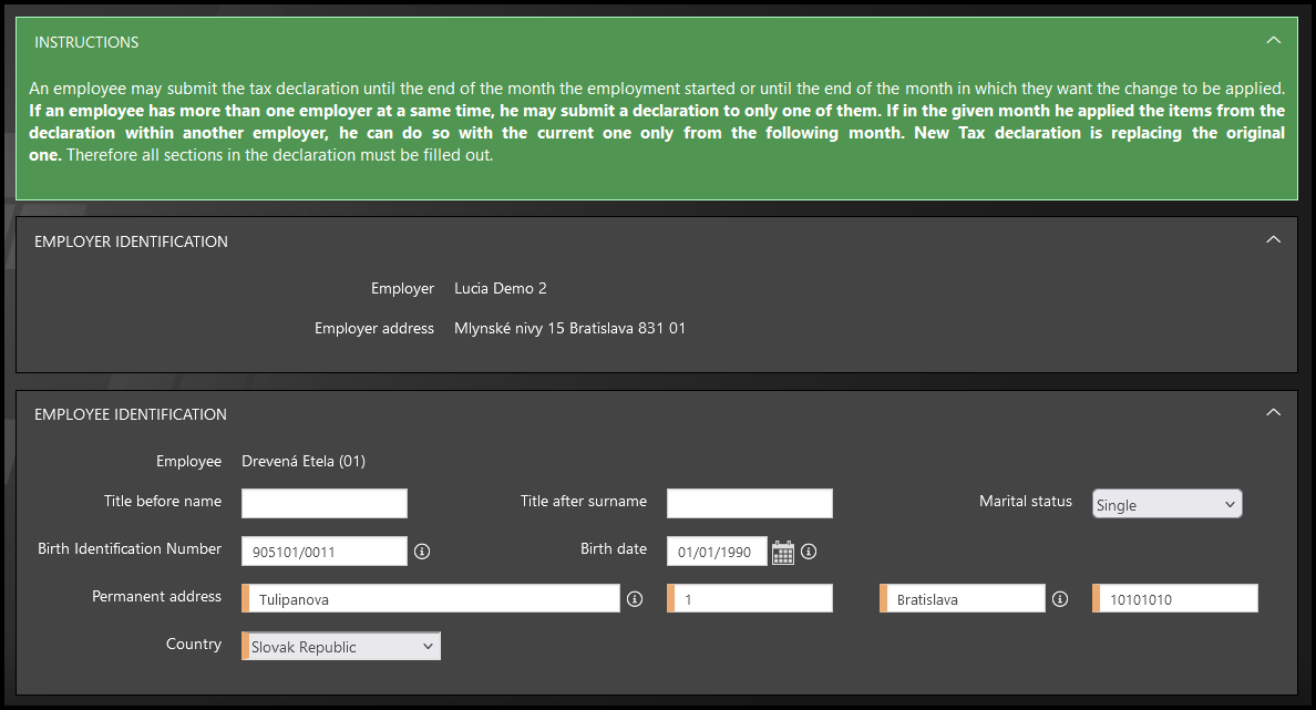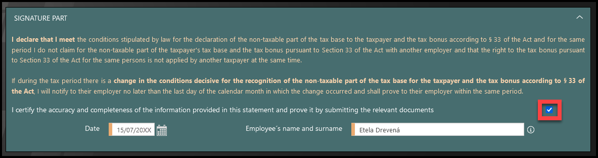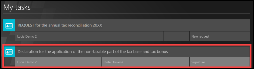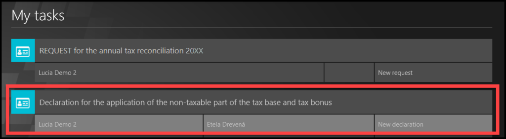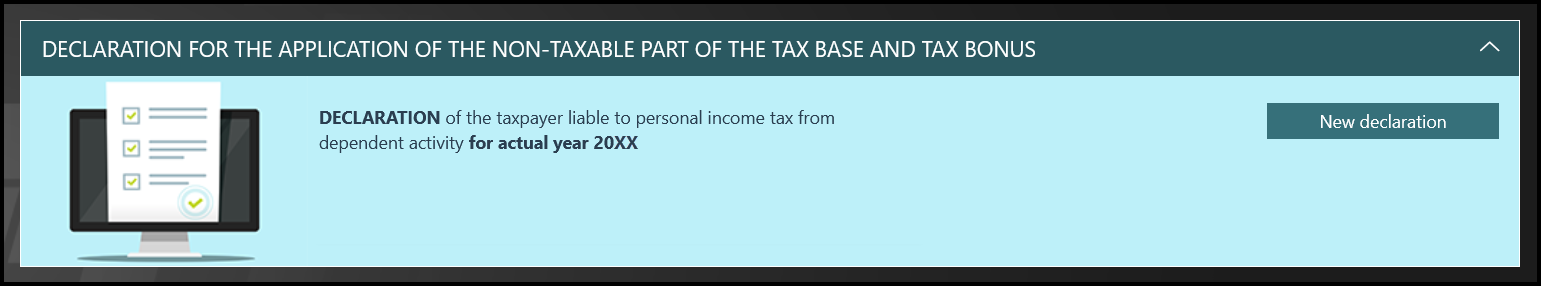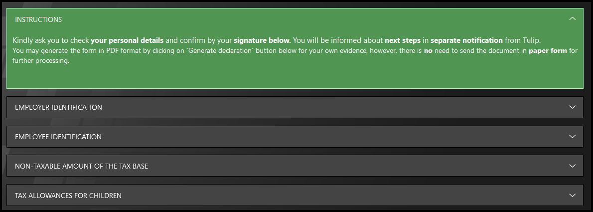 A Declaration for the application of the non-taxable part of the tax base and tax bonus – NCZD (we will use only “Declaration” or “Form” in this manual) is a document that you can fill in and send electronically via TULIP platform to your employer for further processing.