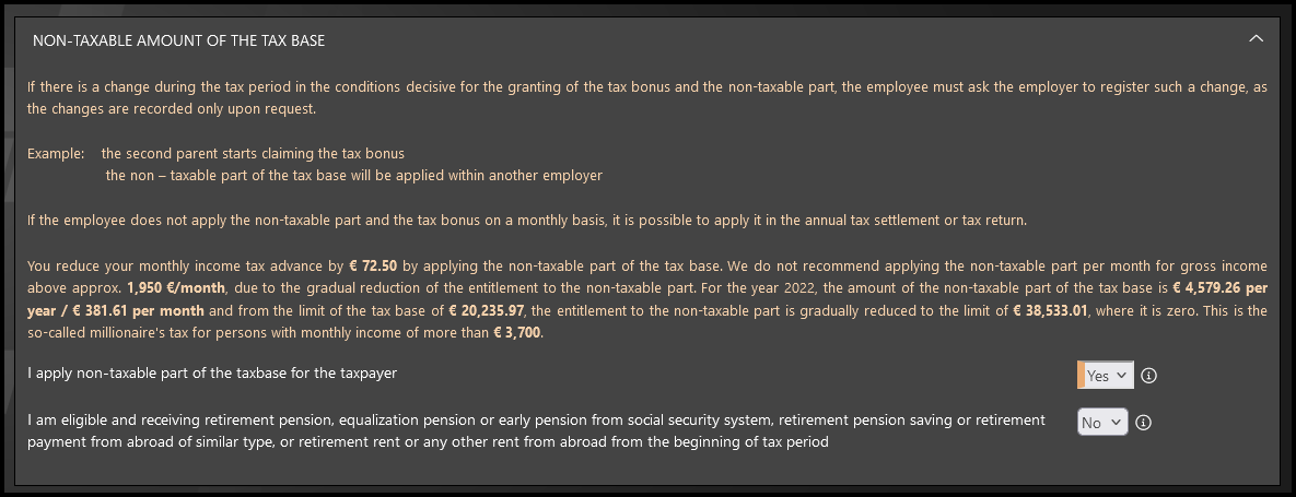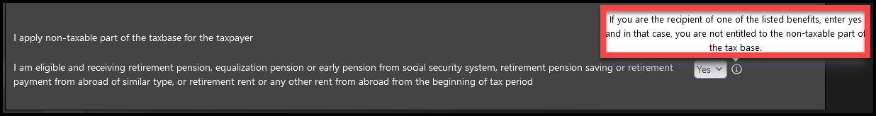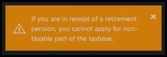 Pop-up message “If you are in receipt of a retirement pension, you cannot apply for the non-taxable part of the taxbase.”