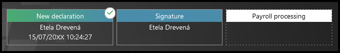 SIGNATURE – Employee signs the Declaration electronically – This step confirms all your data and sends it to payroll. You can no longer edit the data.